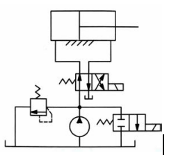 2)二位二通换向阀通电时,右侧路导通,泵里的油直接流回油箱,泵卸荷。油箱→液压泵→二位二通换向阀→油箱。